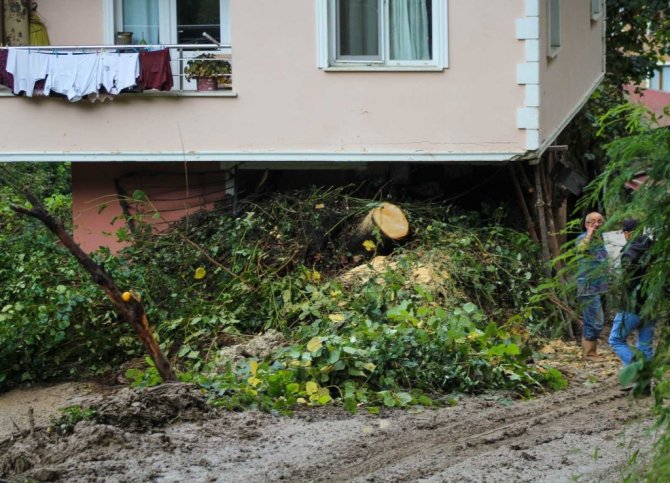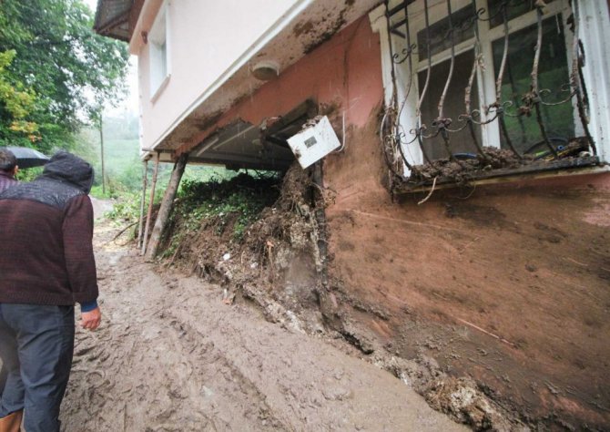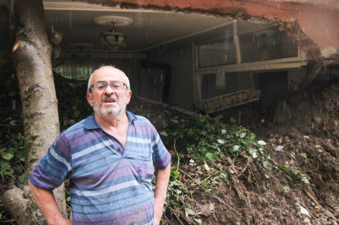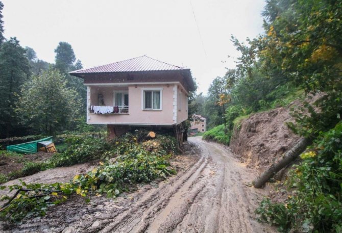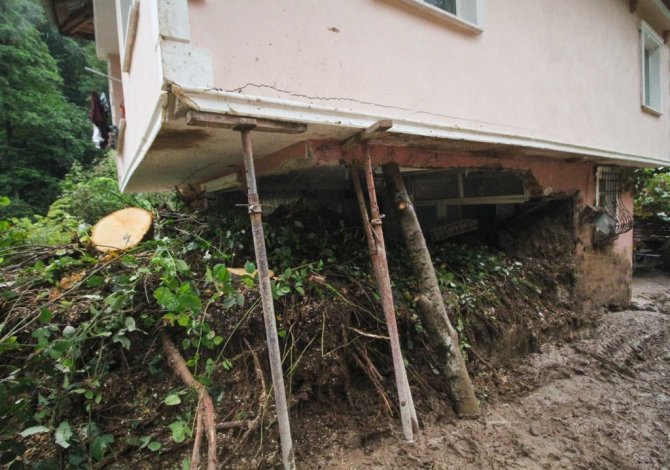 Öte yandan Suiçmez'in zarar gören ve bir kolonu heyelanda yıkılan evinin kalan bölümünün yıkılmaması için demir çubuklar ve odun parçaları ile evine destek yapması dikkat çekti.