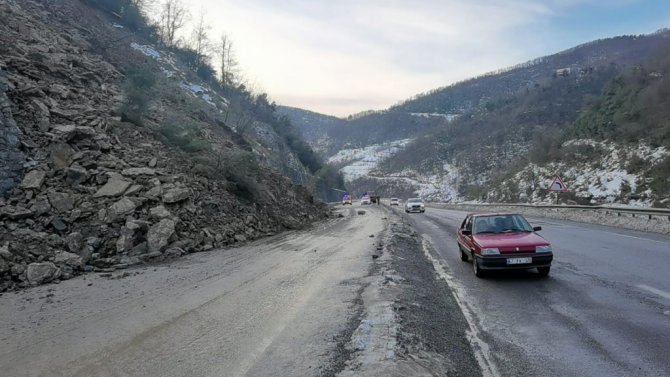 Zonguldak'ta dün gece saatlerinde meydana gelen ve karayolunu Zonguldak istikametine geliş güzergahını ulaşıma kapatan heyelanı temizleme çalışmaları sürüyor. Heyelanın büyüklüğü ise gün ağarınca ortaya çıktı.