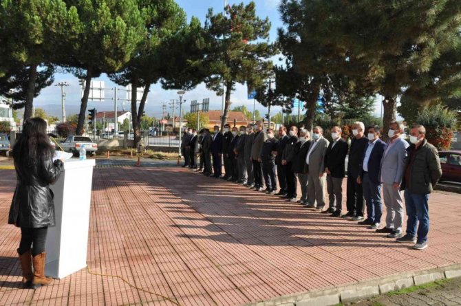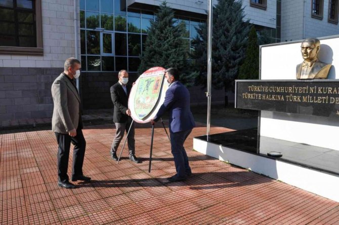 Kütahya'nın Simav ilçesinde, 19 Ekim Muhtarlar Günü dolaysıyla Muhtarlar Derneği tarafından Atatürk Anıtı'na çelenk bırakıldı.