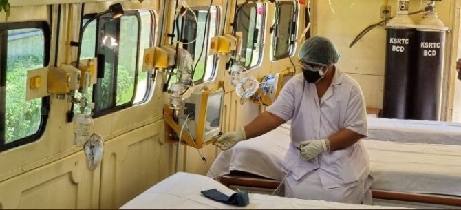 Korona virüs (Covid-19) salgınında ikinci dalganın etkisiyle hastanelerde boş yatakların, ilaçların ve oksijen tüplerinin tükendiği Hindistan'da "tekerlekli yoğun bakım" uygulamasına imza atıldı. Karnataka Eyaleti Karayolu Taşımacılığı Şirketi (KSRTC) tarafından başlatılan tekerlekli yoğun bakım hizmeti kapsamında 5 yatak kapasiteli bir araç tasarlandı. Aracın içinde acil tıbbi müdahale ekipmanı, bir jeneratör sistemi ve oksijen tüpleri bulunurken, söz konusu hizmetin eyalet genelinde uygulanması planlanıyor. Aracın tasarlanma nedeni ise Covid-19 hastalarının hastanelere götürülürken ihtiyaç duydukları oksijene daha kolay ulaşmalarına yardım etmek olarak açıklandı.