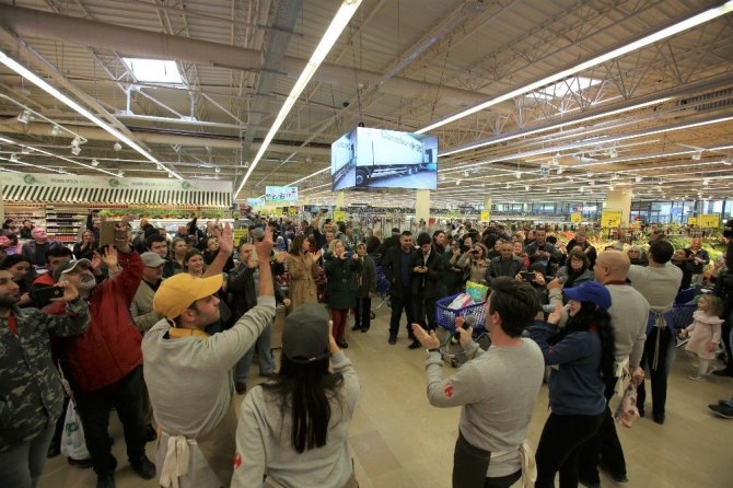 Tüketicilerin şaşkın bakışları altında opera eserlerini okuyan tenor ve sopranolar, ilerleyen dakikalarda büyük bir ilgiyle izlendi.
