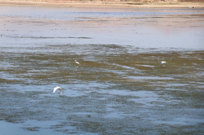 KIRŞEHİR (İHA) – Hirfanlı Barajı'nda kuraklığın etkisiyle azalan su objektiflere yansıdı.