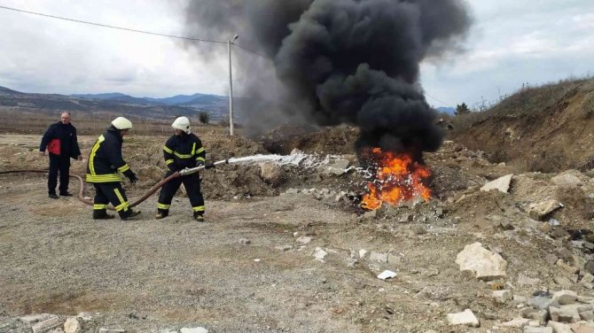Kütahya'nın Hisarcık ilçesi İtfaiye Amirliğinde görevli personele temel yangın eğitimi verildi. Eğitimin ardından uygulamalı yangın söndürme tatbikatı gerçekleştirildi.