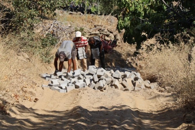 Nazilli Belediyesi ekipleri, Hisarcık Mahallesi sakinlerinin imecesiyle alınan taşların nakliye, döşeme ve alt yapı çalışmalarına başladı.