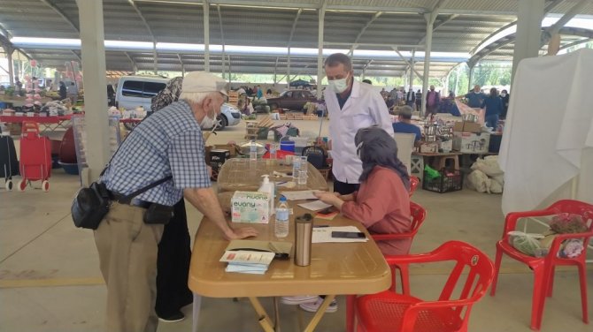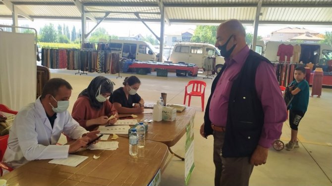 İlçe Devlet Hastanesi sağlık personelince pazar yerine kurulan stantta pazarcı esnafına ve vatandaşlara Sinovac ile Biontech aşısı uygulandı. Aşı olan vatandaşlardan İbrahim Karadana, ilk iki aşısını Sinovac, üçüncü aşısını ise pazar yerinde Biontech yaptırdığını belirterek, "Bütün vatandaşlarımız aşısını yaptırsın. Çok güzel bir uygulama bizler memnun olduk" dedi.
