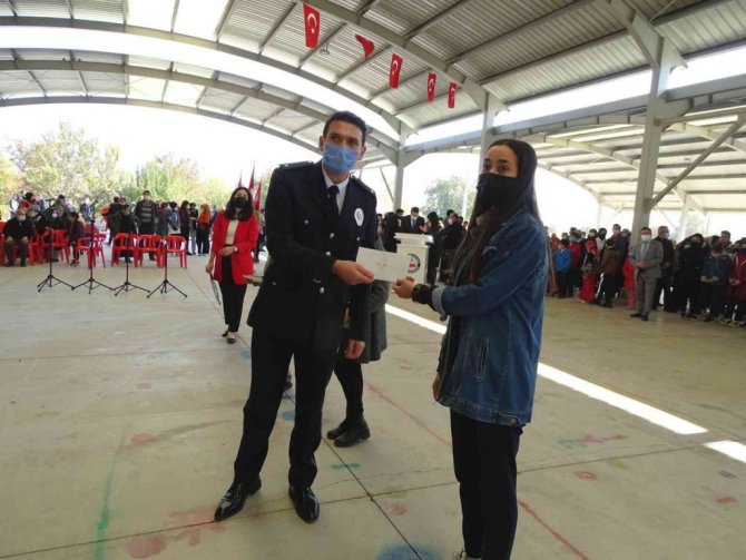 Kapalı Pazar yerinde düzenlenen 29 Ekim Cumhuriyet Bayramı törenleri sonunda Kaymakam Didem Dinç Özay, Belediye Başkanı Fatih Çalışkan, Meslek Yüksek Okulu Müdürü Burak Kavaslar, İlçe Emniyet Amiri Seydi Uzun ve İlçe Jandarma Komutanı Erkan Koç tarafından 29 Ekim Cumhuriyet Bayramı etkinlikleri kapsamında düzenlenen yarışmalarda dereceye giren öğrenciler ile 2020-2021 Eğitim ve öğretim yılında başarı göstererek proje okullarını kazanan 34 öğrenci ödüllendirildi.