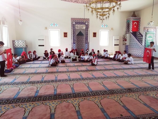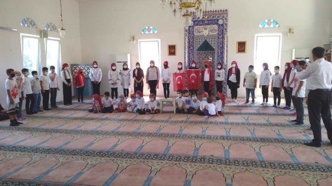 Kütahya'nın Hisarcık ilçesi Kutluhallar köyünde müftülük tarafından açılan Yaz Kur'an Kurslarına katılan öğrenciler için hatim duası düzenlendi.