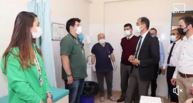 İlçe Devlet Hastanesini ziyaret eden İl Sağlık Müdürü Dr. Mehmet Erşan, sağlık hizmeti almaya gelen vatandaşlar ve görevli sağlık çalışanlarıyla sohbet etti ve personele çalışmalarından dolayı teşekkürlerini iletti.