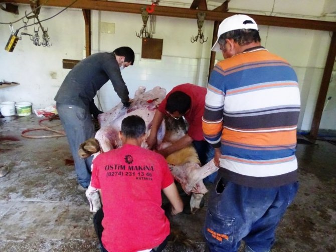Kütahya'nın Hisarcık ilçesinde, Belediye Başkanlığı öncülüğünde her yıl geleneksel olarak düzenlenen şükür duası için kesilen 4 büyük ve 7...