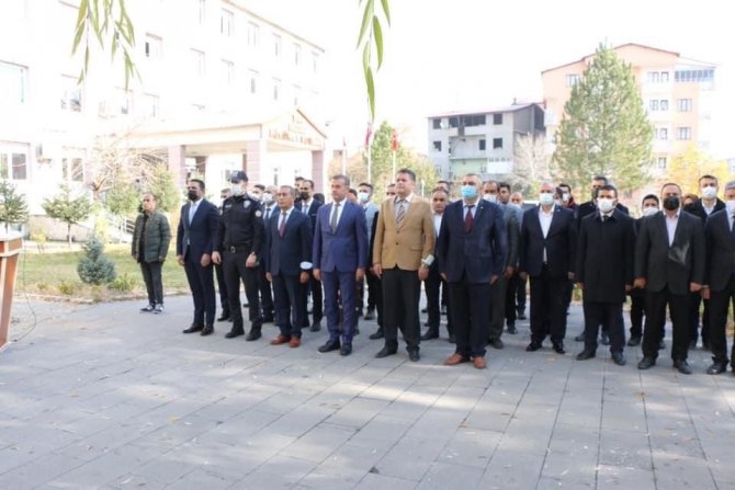 Düzenlenen çelenk sunma törenine Hizan Belediye Başkanı Cezail Aktaş, İlçe Milli Eğitim Müdürü Cemalettin Güngör, kurum amirleri, okul müdürleri ve öğretmenler katıldı.