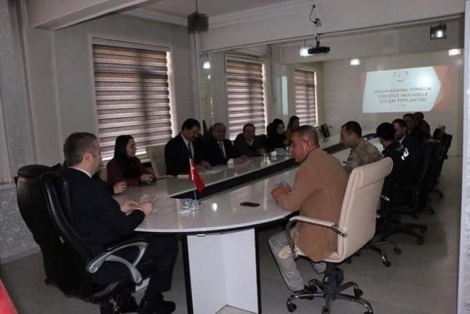 Kaymakam Muhammed İkbal Yelek başkanlığında yapılan toplantıda, Kadına Yönelik Şiddet ile Mücadele 4. Ulusal Eylem Planı'nın 5 ana hedefi üzerinde duruldu. "Şiddete Sıfır Tolerans" ilkesi doğrultusunda kadına yönelik her türlü şiddeti önlemek amacıyla yeni dönemin şiddetle mücadele yol haritasını 28 strateji ve 227 faaliyet şeklinde yapılandırıldığını belirten Kaymakam Yelek, kadına yönelik şiddetle mücadelede tüm kamu kurum ve kuruluşlarla birlikte çalışmalara kararlılıkla devam edeceklerini vurguladı. Kadının mutlu ve huzurlu olmadığı bir dünyanın mutluluğu ile huzurundan söz edilmeyeceğini belirten Kaymakam Yelek, "Kadına karşı şiddetle mücadelede etkin rol alan Kadın Acil Destek Uygulamasını (KADES) yaygınlaştırmak için de kurumların topyekûn bir gayret içerisinde bulunarak bilgilendirme çalışmalarının aralıksız devam etmesi gerekir" dedi.