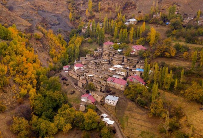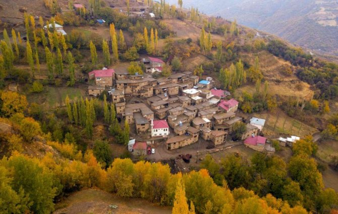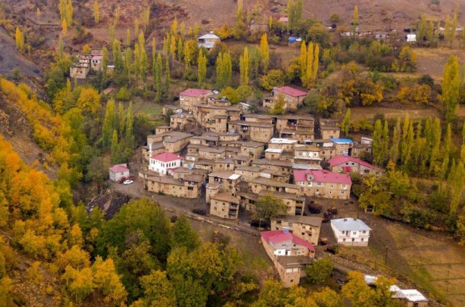 Bitlis'in Hizan ilçesine bağlı taş evlerden oluşan köyler, sonbaharla birlikte eşsiz manzara oluşturuyor.