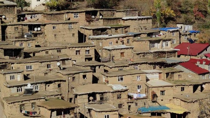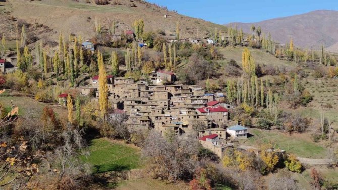 Bitlis'in Hizan ilçesinde tarihe meydan okuyan taş evler, sonbahar ile birlikte görenleri hayran bırakıyor.