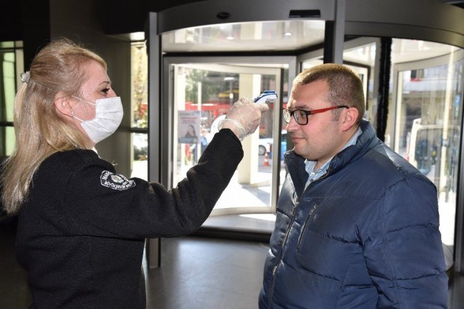 Hizmet binalarında ateş ölçer ve el dezenfaktanlı önlem