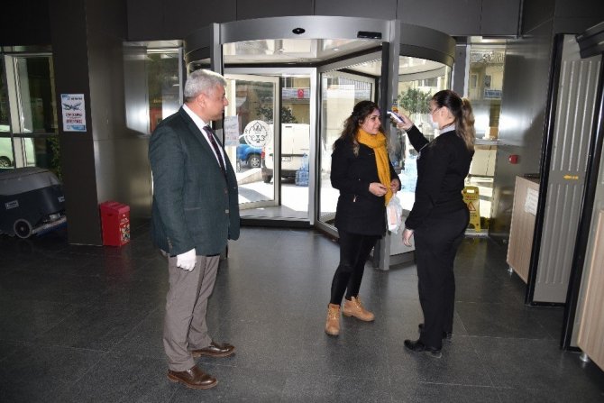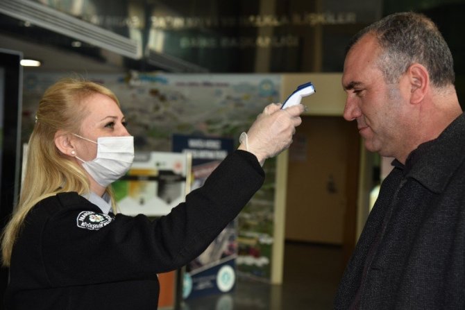 Korona virüsüne karşı, il genelinde adeta temizlik seferberliği başlatan Manisa Büyükşehir Belediyesi, hizmet binalarında da ateş ölçer ve el dezenfektanı ile önlem aldı. Hizmet binasına gelen vatandaşların ve personellerin önce elektronik ateş ölçerlerle vücut sıcaklığı kontrol ediliyor, ardından da el dezenfektanı ile hijyen çalışması yapılıyor.