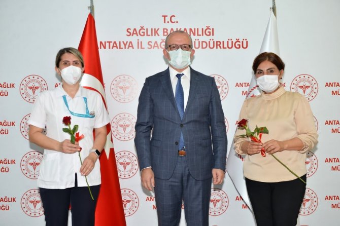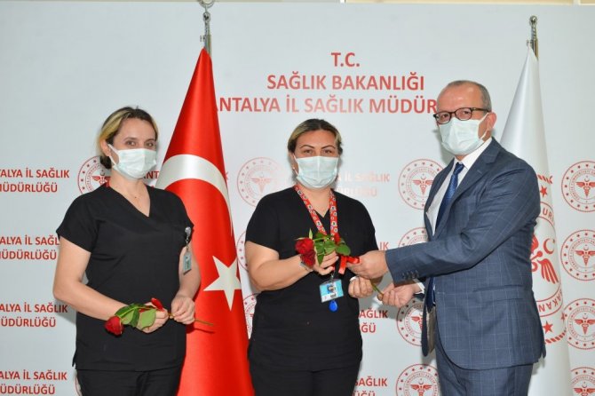 Antalya İl Sağlık Müdürü Ünal Hülür, Hemşirelik Haftası etkinlikleri kapsamında, hemşirelere kırmızı gül verdi.