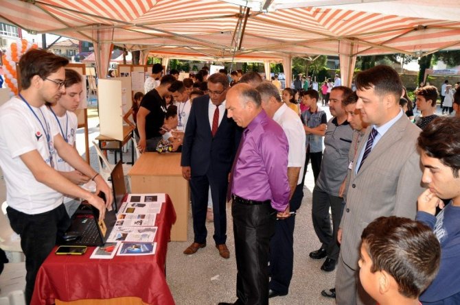 24 danışman öğretmen ve 48 öğrenciyle 24 bilimsel proje hazırladıklarını ifade eden Nazilli Atatürk Anadolu Lisesi Müdürü Adem Uzan, "Geleneksel hale getirdiğimiz TÜBİTAK Bilim Fuarını bir kez daha gerçekleştirmenin gururunu yaşıyoruz. Bilim adamları ve mucitlerin yetişmesi için bu tür fuarlara devam edeceğiz. Bu fuarlar öğrencilerimize ışık oluyor" dedi.
