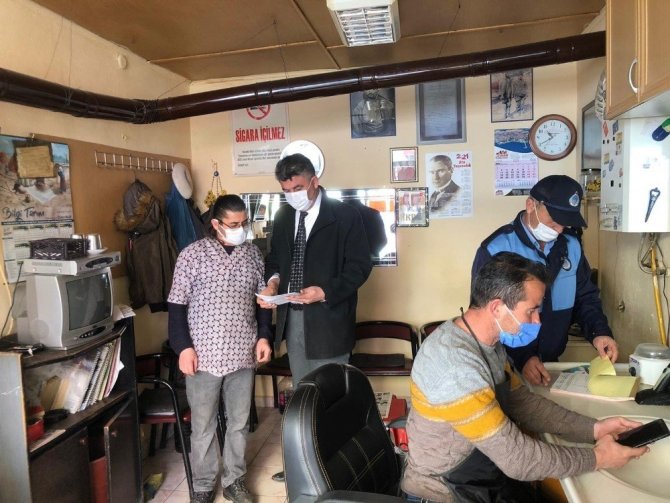 Konya'nın Hüyük ilçesinde faaliyet gösteren berber ve kuaför salonları, kontrollü normalleşme dönemi ile birlikte zabıta ekipleri tarafından korona virüs tedbirleri kapsamında denetime tabi tutuldu.