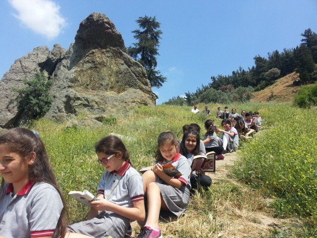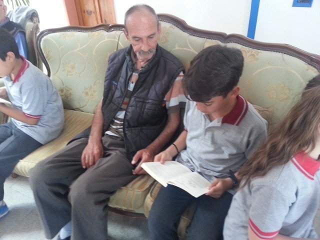 Okulun Türkçe öğretmenleri Serkan Keskin ve Barış Kılavuz tarafından yürütülen proje kapsamında geçtiğimiz aylarda okul bahçesi, otobüs, kütüphane gibi farklı mekanlarda kitap okuma etkinliği gerçekleştiren öğrenciler, bu kez hem huzurevi sakinlerini ziyaret edip saygı ve minnetlerini gösterdi Huzurevi sakinlerine kitap okuyan öğrenciler yaşlılarla birlikte farklı bir etkinliğe imza atarak mutluluklarına ortak oldu.