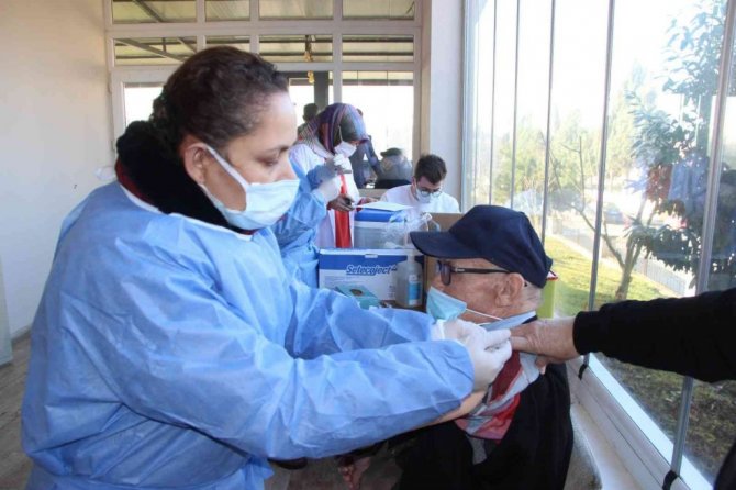 DÜZCE (İHA) – Düzce'de korona virüsle mücadele kapsamında huzurevlerinde kalan yaşlılar aşılandı.