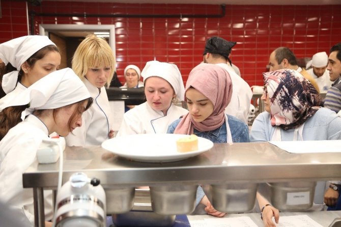 Renkli anlara sahne olan etkinlikte, Engelliler Sarayı’nda aşçılık ve yemek eğitimi alan engelli bireyler, İAÜ Gastronomi Bölümü Öğretim Görevlileri Duygu Tuğcu ve Yıldırım Beyazıt Serim gözetiminde pasta, makarna ve brownie yaparak yeteneklerini sergiledi.