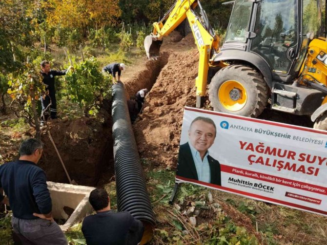 Antalya Büyükşehir Belediyesi İbradı'nın Aydınyayla mahallesinde iki ayrı noktada yağmur suyu çalışması gerçekleştirildi.