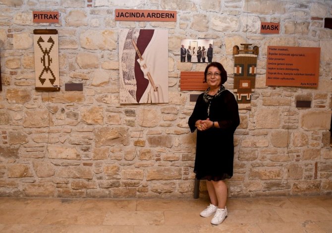 Kuşadalı sanatseverlerin yoğun ilgi gösterdiği sergide, Ayla Koçer tarafından yapılan ve Yeni Zelanda'nın kadın Başbakanı Jacinda Ardern'e hediye edilen eserin fotobloğu da yer aldı. Yeni Zelanda'ın ChristChurch ilçesindeki iki camiye 2019 yılında düzenlenen bombalı terör saldırısının ardından Ardern'in sergilediği tavır ve duruşundan çok etkilendiğini belirten Koçer, "Ardern'in saldırı sonrası camiye başına siyah bir örtü takarak gitmesi ve terör saldırısında yakınlarını kaybetmiş insanların acısını ve yasını paylaşması beni çok duygulandırdı. Eserimde, başbakanı birleştirici bir dikiş iğnesi gibi düşündüm. Din, dil ve cinsiyet gibi hiçbir ayrıştırıcıya meydan vermeden önce insan olmayı merkeze koydum. Ortaya çıkan eserimi de kendisine hediye ettim "dedi.