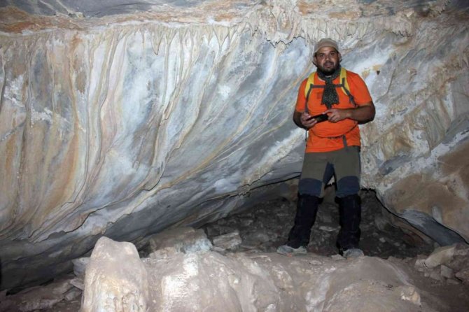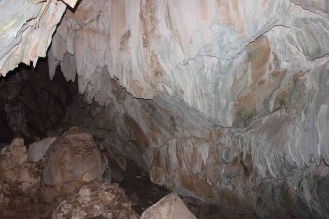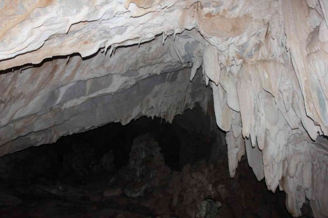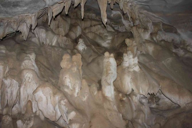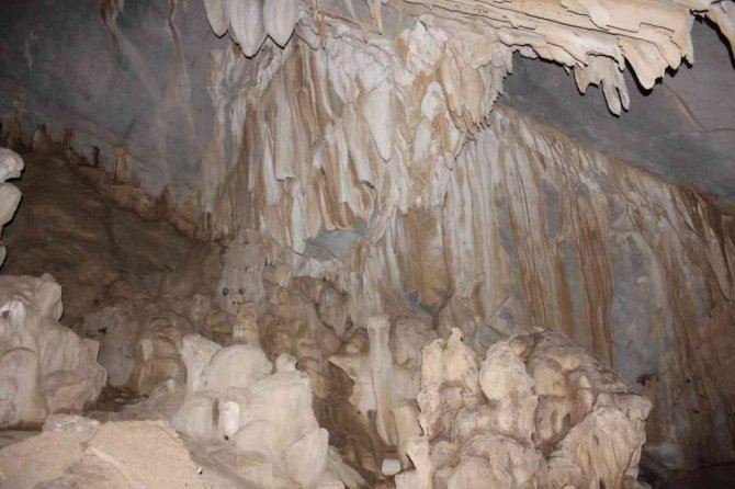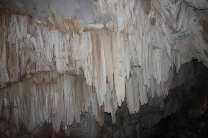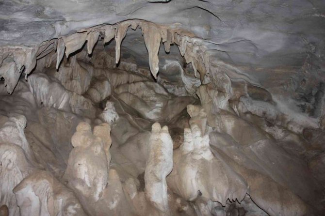 İçerisinde sarkıt ve dikitler olan mağara büyülüyor