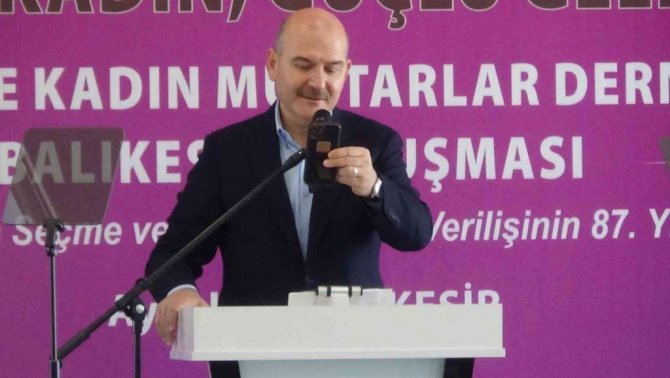 İçişleri Bakanı Soylu, daha sonra kadın muhtarlara AFAD tarafından hazırlanan çantalardan hediye etti.