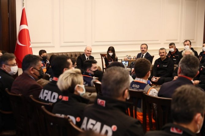 AFAD'ın uzmanlıktaki becerisine değinen Bakan Soylu, "Büyük bir farkındalık ve mücadele içindeyiz. Bir gayret içindeyiz ve burada en büyük silahımız AFAD Başkanlığımızdır. AFAD Başkanlığımızda geldiğimiz seviyedir, uzmanlıktır, beceridir. Başkanımızın, valimizin bu geminin kaptanlığına gelmesiyle çok daha yüksek bir sinerji yakaladığımıza inanıyorum ve bunun işaretlerini şimdiden görüyorum. Birlikte yaşadığımız afetlerden sonra hem kurum içinde hem diğer kurumlarla aramızda ciddi bir aşinalık ve alışkanlık da gelişti. Bu da beni ayrıca mutlu ediyor, umutlandırıyor. İnşallah sizlerin gayretleriyle bunu çok daha yüksek bir noktaya taşıyacağımıza ve önümüzdeki zorlu süreçleri atlatacağımıza inanıyorum" dedi.