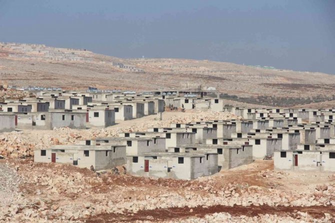 İçişleri Bakanı Süleyman Soylu, Suriye'nin kuzeybatısında yer alan İdlib bölgesini ziyaret ederek, yapımı devam eden briket evleri inceledi.