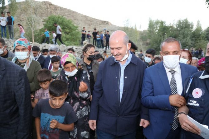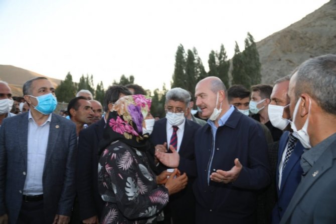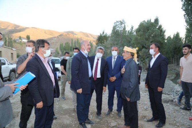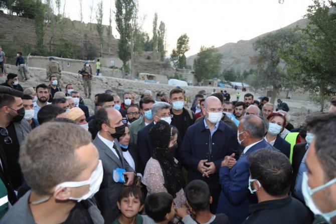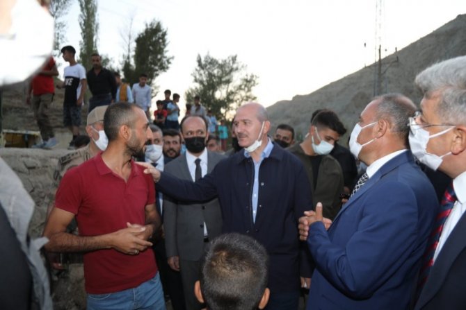 Şırnak ve Hakkari'deki temaslarının ardından 31 Temmuz'da sel felaketinin meydana geldiği Van'ın Başkale ilçesine bağlı Esenyamaç Mahallesi'ne gelen İçişleri Bakanı Süleyman Soylu, burada Van Valisi ve Büyükşehir Belediye Başkanı Mehmet Emin Bilmez, AK Parti Van Milletvekili Abdulahat Arvas, İl Jandarma Komutanı Tuğgeneral Hüseyin Bekmez, İl Emniyet Müdürü Atanur Aydın, Başkale Kaymakamı Asım Solak, AK Parti İl Başkanı Kayhan Türkmenoğlu, Büyükşehir Genel Sekreteri Mehmet Fatih Çelikel ve kurum amirleri tarafından karşılandı. Beraberindekilerle mahalledeki selzedeleri tek tek ziyaret eden Bakan Soylu, burada vatandaşların taleplerini dinledi. Daha sonra gazetecilere açıklamalarda bulunan Bakan Soylu, Başkale'de sel afeti yaşanırken ülkenin başka bölgelerinde yangınla mücadele edildiğini belirtti. Devletin vatandaşın ihtiyaç duyduğu zamanda lazım olduğunu ifade eden Bakan Soylu, "Tüm yardımlarıyla sizinle birlikte olan, sizi tanımayan ama zorluğunuzu hisseden, buraya yardım eden herkese çok teşekkür ediyoruz. Ekipler burada ilk müdahaleyi gerçekleştirdi, bir an önce hayatın akışını sağlamak için gayret sağladı. Çadırlar, şimdi konteynerler, her biri oluştu, oluşuyor. Yine aynı zamanda yollar düzeltildi. Gıda yardımlarından diğer yardımlara kadar bütün ihtiyaçların hepsi sağlanmaya çalışıldı ve bunlar da devam edecek. Burada yıkılmış 38'e yakın ve yeniden yapılması gereken evler var. Bunlarla ilgili hasar tespitleri yapıldı, bunlar gerçekleştirilecek. Diğer birtakım hasarlar var, onlar da sağlanacak. Yani buradaki sistemimiz eski halinden daha güzel bir hale dönene kadar devlet buradan, hükümetimiz buradan, Cumhurbaşkanımızın talimatlarıyla buradan elini çekmeyecek. Biz sizin emrinize amadeyiz" diye konuştu.