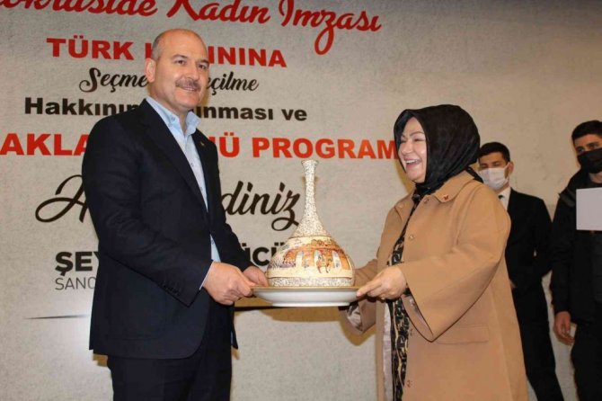 Öte yandan program sonunda Başkan Döğücü, Bakan Soylu "ya hediye ve çiçek takdiminde bulundu.