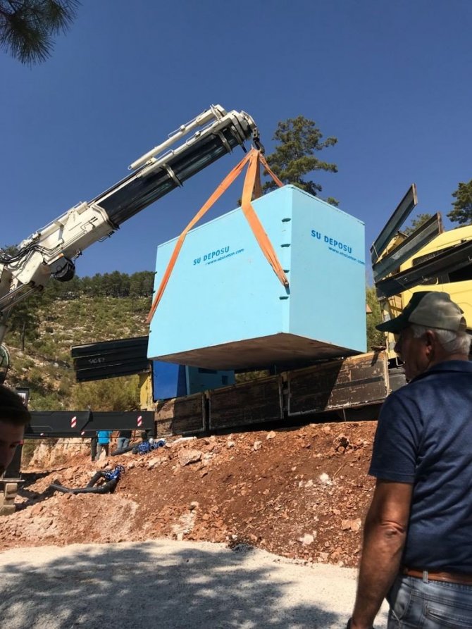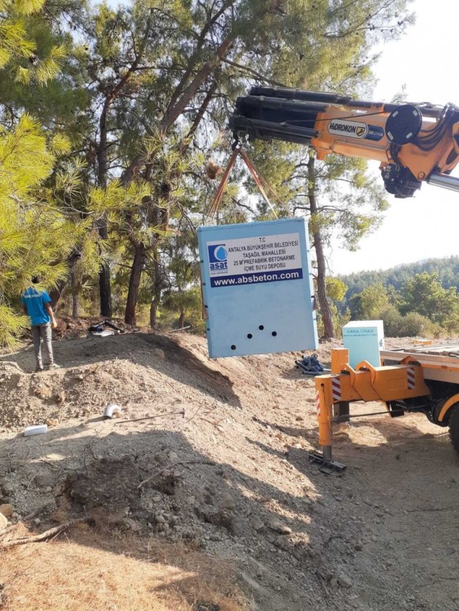 Antalya Büyükşehir Belediyesi, yaz aylarında içme suyu sıkıntısı yaşayan kırsal mahallelerde sorunun hızlı çözümü için portatif depo uygulaması başlattı.