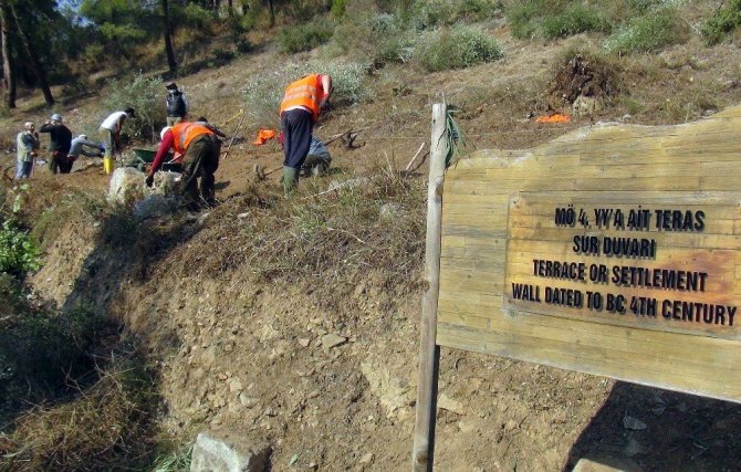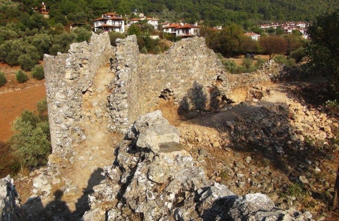Muğla’nın Ula ilçesine bağlı Gökova Mahallesi’ndeki İdyma antik kentinde yüzey araştırması tamamlanırken, kentin uzantısı Akyaka Mahallesi’ndeki Ortaçağ kalesinin surları ortaya çıktı. Yaklaşık iki ay önce başlayan kazı çalışmalarında Azmak yolu kenarında çalışmalar aralıksız devam ediyor.
