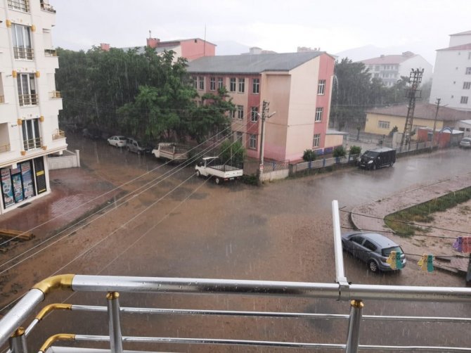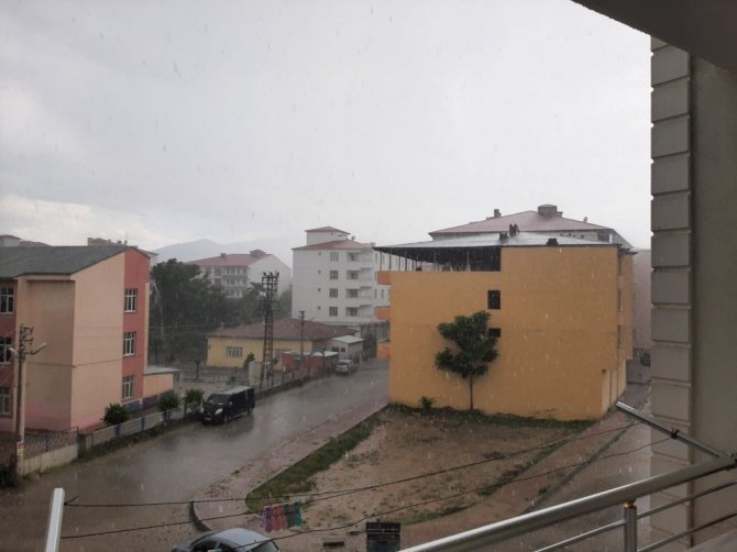 Iğdır kent merkezinde öğle saatlerinden itibaren doluyla beraber sağanak yağış etkili oldu.