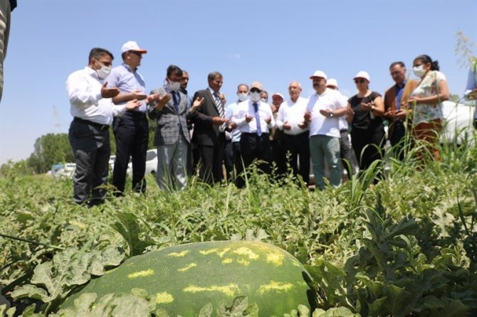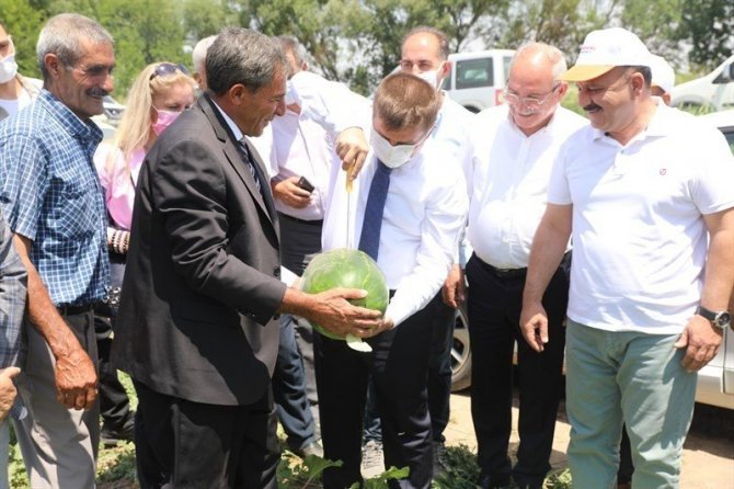 Iğdır Valisi H. Engin Sarıibrahim, Tarım ve Orman İl Müdürlüğü tarafından ilk ürünlerin toplanması amacıyla Oba köyünde düzenlenen karpuz hasat törenine katıldı.
