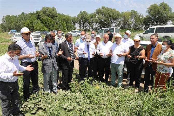 'Örtü altı" olarak bilinen ve erken üretilen karpuzların hasadı dualar eşliğinde başladı. Hasat törenine protokol üyeleri, kurum müdürleri, çiftçiler ve vatandaşlar katıldı.