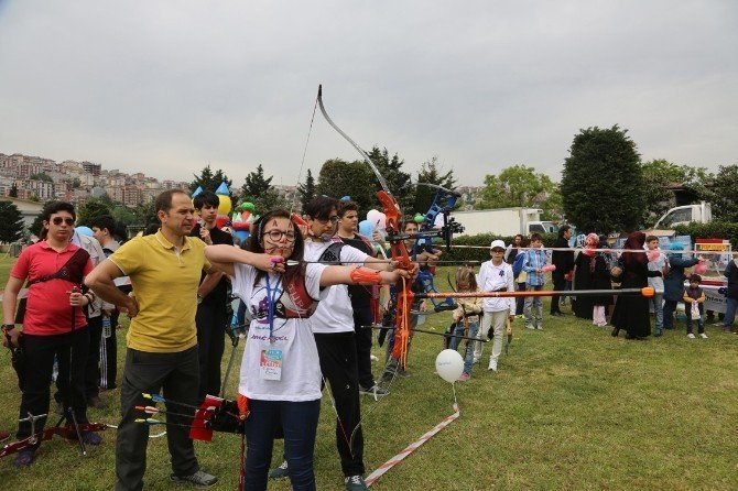 İhlas Koleji Okçuluk Takımı antrenörlerinden okçuluk hakkında bilgiler alan çocuklar yay gererek atışlar yaptılar ve okçuluk sporunu yakından tanıdılar.
