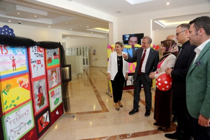 Okulun görsel sanatlar öğretmeni Elmas Sancak’ın rehberliğinde farklı tekniklerin bir arada kullanıldığı resimler arasında 15 Temmuz’u ve Afrin operasyonunu konu alan çalışmalar dikkat çekti.
