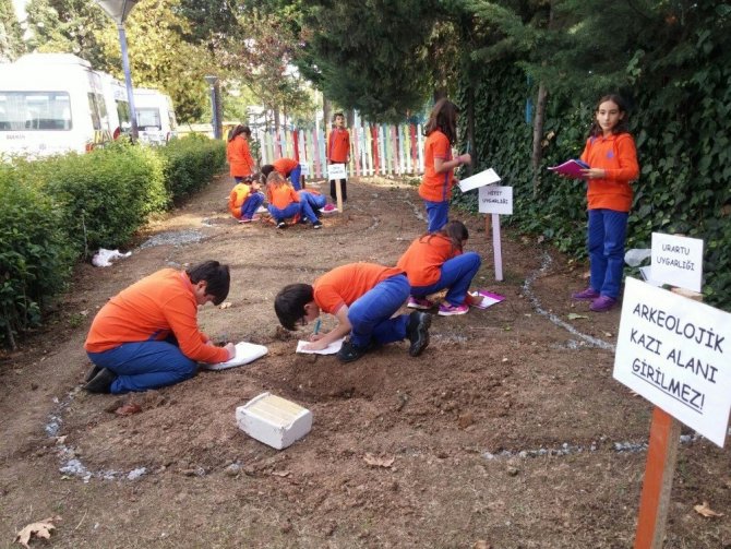 Özel Bahçelievler İhlas Ortaokulu 5. sınıf öğrencileri arkeoloji bilimini tanımak ve önemini kavramak adına okul bahçesinde kazı çalışması düzenlediler. Bahçeye gömülü materyalleri bulmak için yapılan kazı çalışmaları gerçeğine uygun olarak yapıldı.