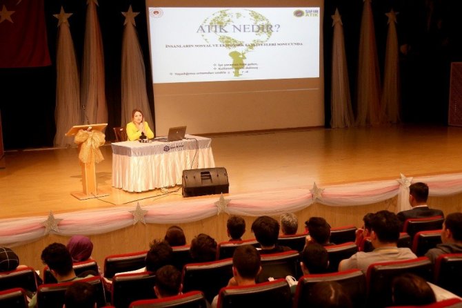 Özel İhlas Anadolu ve Fen Lisesi öğrencilerinin dinleyici olarak yer aldığı konferansa İstanbul Çevre ve Şehircilik İl Müdürlüğü’nden çevre mühendisi Zeynep Sayaroğlu konuşmacı olarak katıldı.