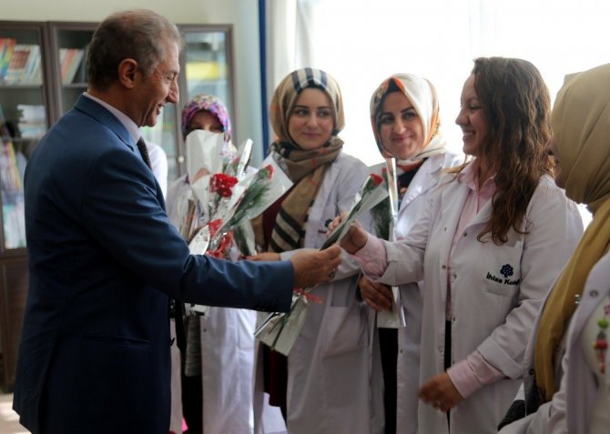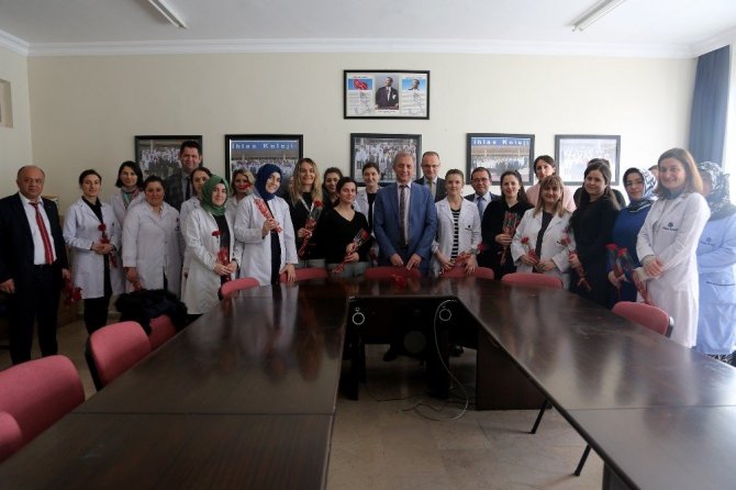 Kadın öğretmenlere ve çalışanlara çiçek vererek onların Dünya Kadınlar Günü’nü kutlayan Yeltekin, yaptığı konuşmada kadının her zaman farklı bir yere sahip olduğuna vurgu yaptı.