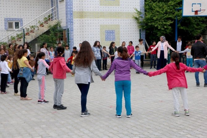 Gün sonunda gönüllüler her öğrenci için hazırladıkları hediye paketlerini verdiler ve yöresel oyunlar oynayıp halay çektiler.