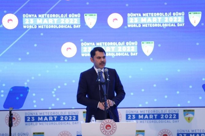 Milli Savunma Bakanı Hulusi Akar ve Çevre, Şehircilik ve İklim Değişikliği Bakanı Murat Kurum, Meteoroloji Genel Müdürlüğü tarafından bakanlığın merkez binasındaki konferans salonunda düzenlenen 23 Mart Dünya Meteoroloji Günü kutlama programına katıldı. Programın açılış konuşmasını yapan Bakan Kurum, hava tahmini konusunda yapılan çalışmaları anlattı. Dünyanın iklim değişikliğinin ağır sonuçları ile karşı karşıya bulunduğunu, bu durumdan dünya üzerindeki canlı-cansız tüm varlıkların derinden etkilendiğini belirten Bakan Kurum, "Özellikle medeniyetimizin sembolleri olan şehirlerimiz sıcak hava dalgaları, kuraklık, su stresi gibi iklim değişikliğinden kaynaklı pek çok meteorolojik krizle mücadele ediyor. Biz Türkiye olarak tarihi sorumluluğumuz bulunmamasına rağmen bütün uluslararası çalışmalara taraf oluyor, iklim değişikliğiyle mücadelede üzerimize düşeni fazlasıyla yerine getiriyoruz. İklim değişikliğinin sebep olduğu olumsuz sonuçları ancak enerji, tarım, sanayi, ulaştırma ve yapı sektörlerinde hızlı, iyi planlanmış ve geniş kapsamlı, eş zamanlı bir dönüşümle önleyebiliriz. İkinci olarak yapılması gereken ise meteorolojik afetlerden, yaşadığımız bu ağır sonuçlardan mümkün olduğu kadar erken haber alıp tedbirleri almaktır. Ağır sonuçları olan hava olaylarına neden olan iklim krizi, insanoğlunun meteorolojiye çok daha fazla önem verme gerekliliğini ortaya çıkarmıştır. Bu anlamda ulusal ve uluslararası çalışmalar, dünyamızın geleceği açısından çok daha kritik bir noktaya ulaştı" diye konuştu.