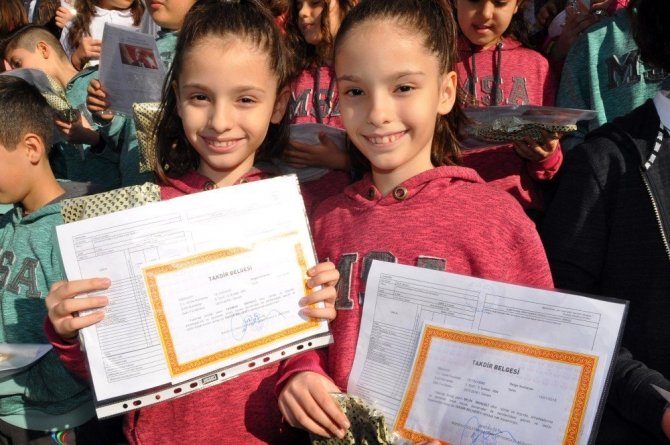 Daha sonra ikiz ve bir üçüz öğrenciler, aileleri ile karne sevincini yaşayıp fotoğraf çektirdi. İkiz öğrencilerden Naz Demir, ’’İlk dönem çok güzel geçti. İkizim le birlikte aynı okuldayız ama farklı sınıflardayız. İkizimle anlaşıyoruz. Öğretmenlerimiz bizi çok karıştırıyor’’ dedi. İkizi Nil Demir de okulun iyi geçtiğini söyledi. İkizler anne ve babalarına takdir belgesi götürmenin sevincini yaşadı.