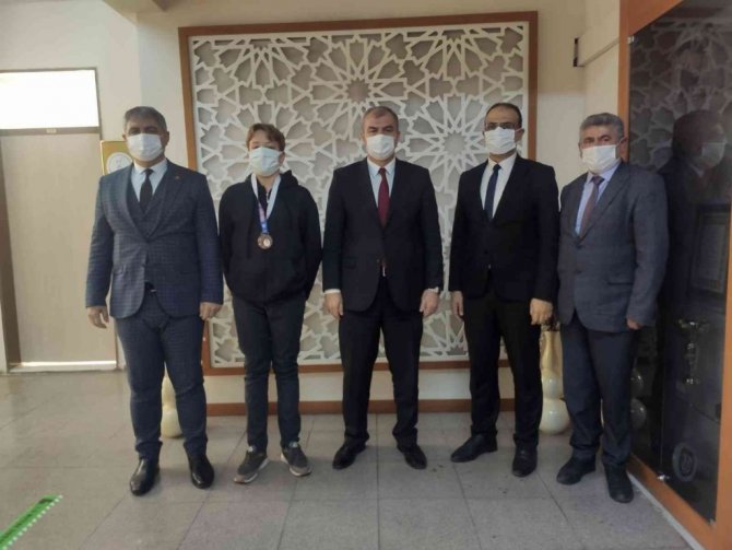 İl Milli Eğitim Müdürü Okumuş, yüzmede derece elde eden öğrenciyi ağırladı