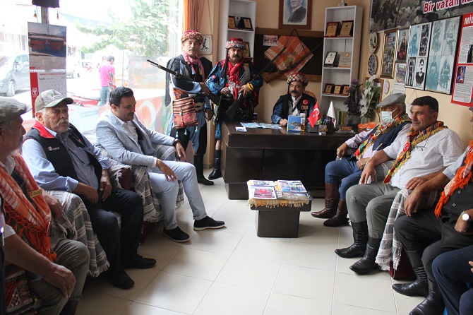 “Efelerin Efesi” Yörük Ali Efe, ebediyete uğurlanışının 70. yıldönümünde Aydın’ın Yenipazar ilçesindeki mezarı başında dualarla anıldı. Yörük Ali Efe’nin müzeye dönüştürülen evinin bahçesindeki mezarının yanında anma etkinliğine katılan Aydın İl Kültür ve Turizm İl Müdürü Doç. Dr. Umut Tuncer, toplantı sonrası Yenipazar Efeler Derneğine ziyarete bulundu. Burada dernek başkanı Nedim Gürpınar’ın hazırladığı sürpriz ile karşılaşan Tuncer sevinci ve hüznü bir arada yaşadı.