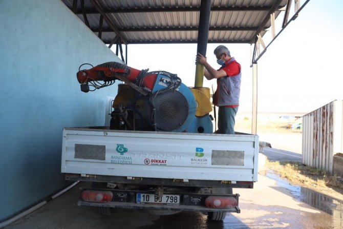 Balıkesir'in Bandırma ilçesinde yaz aylarının gelmesiyle birlikte sinek, sivrisinek ve karasinek larvalarının oluşumunu engellemek amacıyla başlatılan ilaçlama çalışmaları yoğunlaştı.