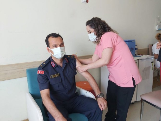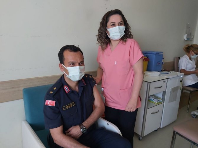 İlçe Jandarma Komutanının korona virüs aşısını hemşire eşi yaptı